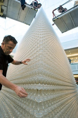 In the Wijnegem Shopping Centre near Antwerpen, Belgium a group of activists is trying to hold a new record. The Champagne Fountain will consist of 43 000 glasses, will be almost 23 feet high and will weigh about 9 tons